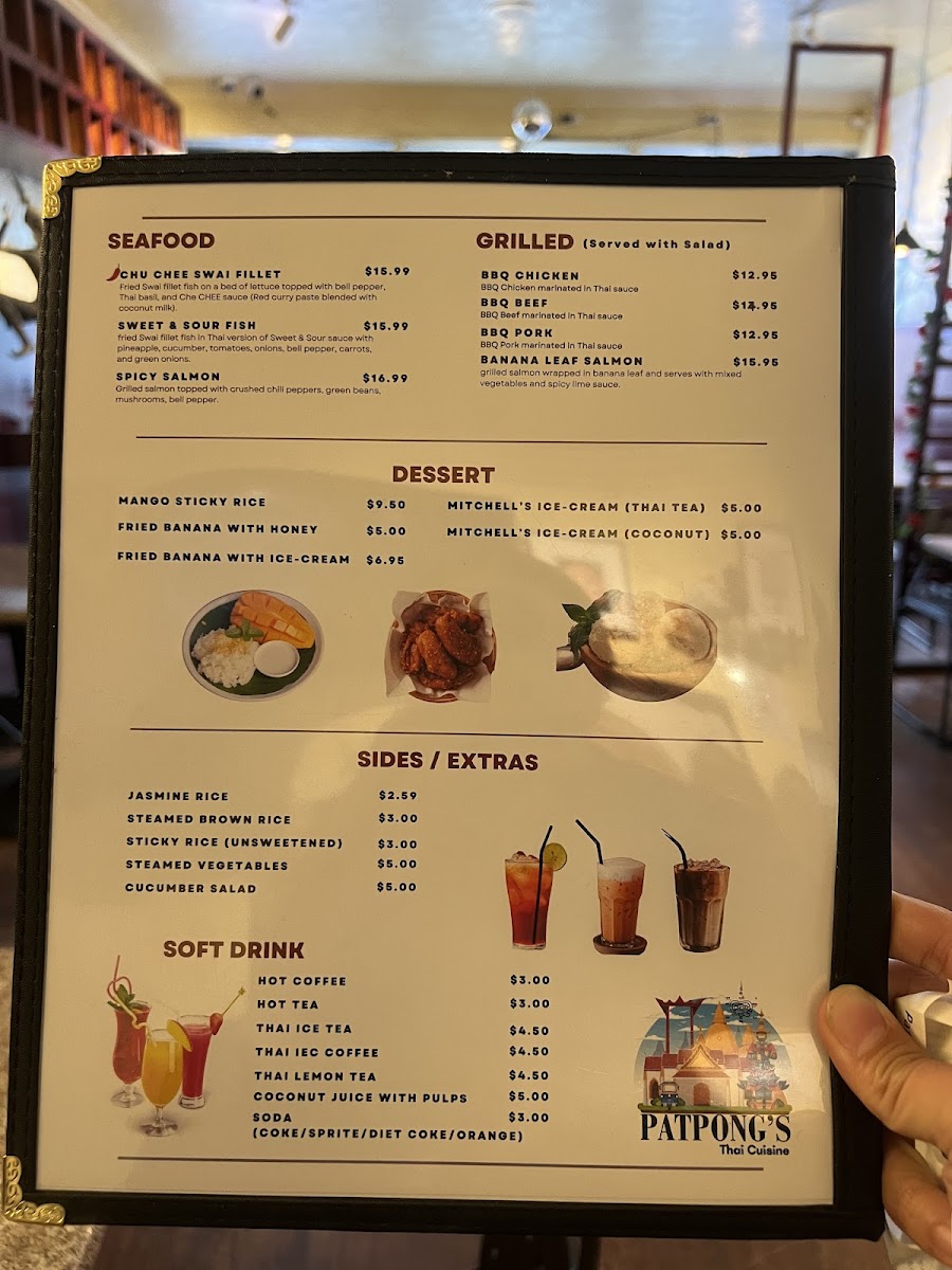 Grilled marinated pork with patpong sauce on the side. Served with salad.
