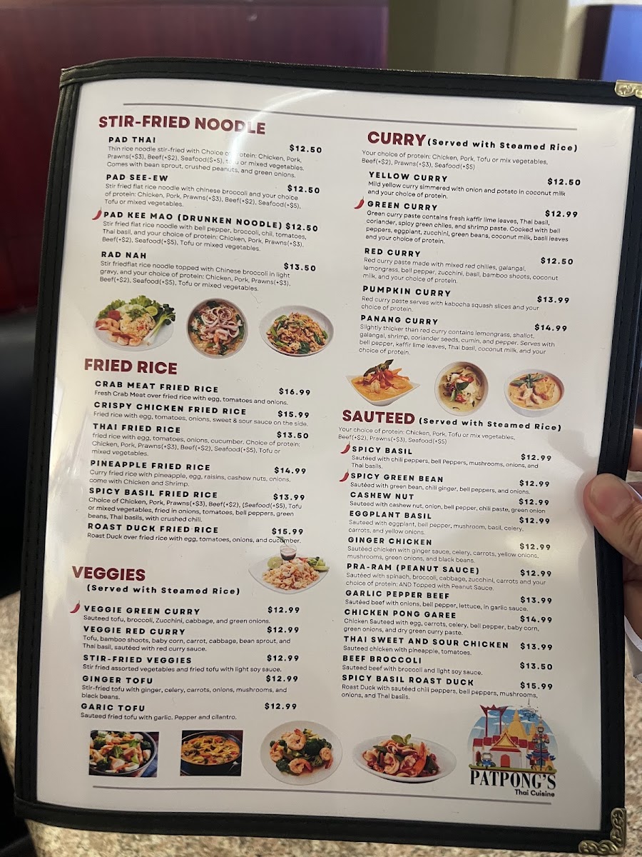 Pork sauteed with crushed chili pepper, bell pepper, fresh mushrooms, onions and thai basil.